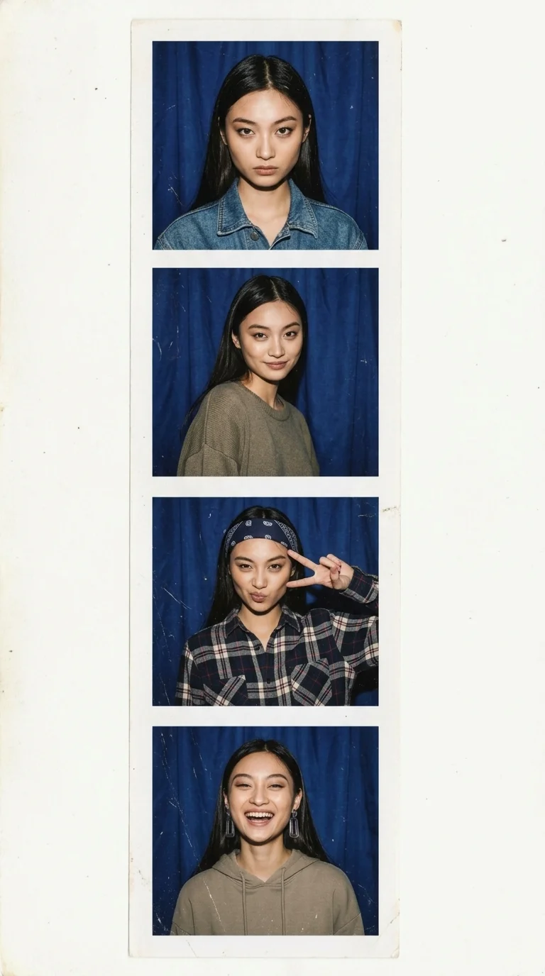 Эффект мгновенного снимка из фотокабинки — с характерной вспышкой, яркими цветами и ретро стилем. Живо, искренне и очень атмосферно.![]()