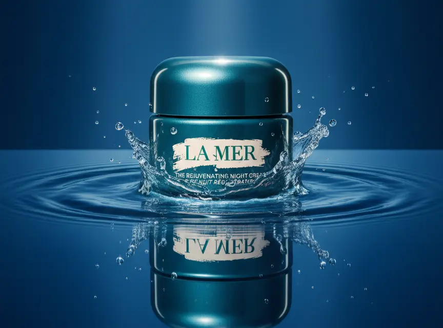 Возьми предоставленное изображение крема La Mer. Сам продукт (банка, крышка, логотип, этикетка) должен остаться абсолютно неизменным, без искажений, изменений цвета, размера или формы.